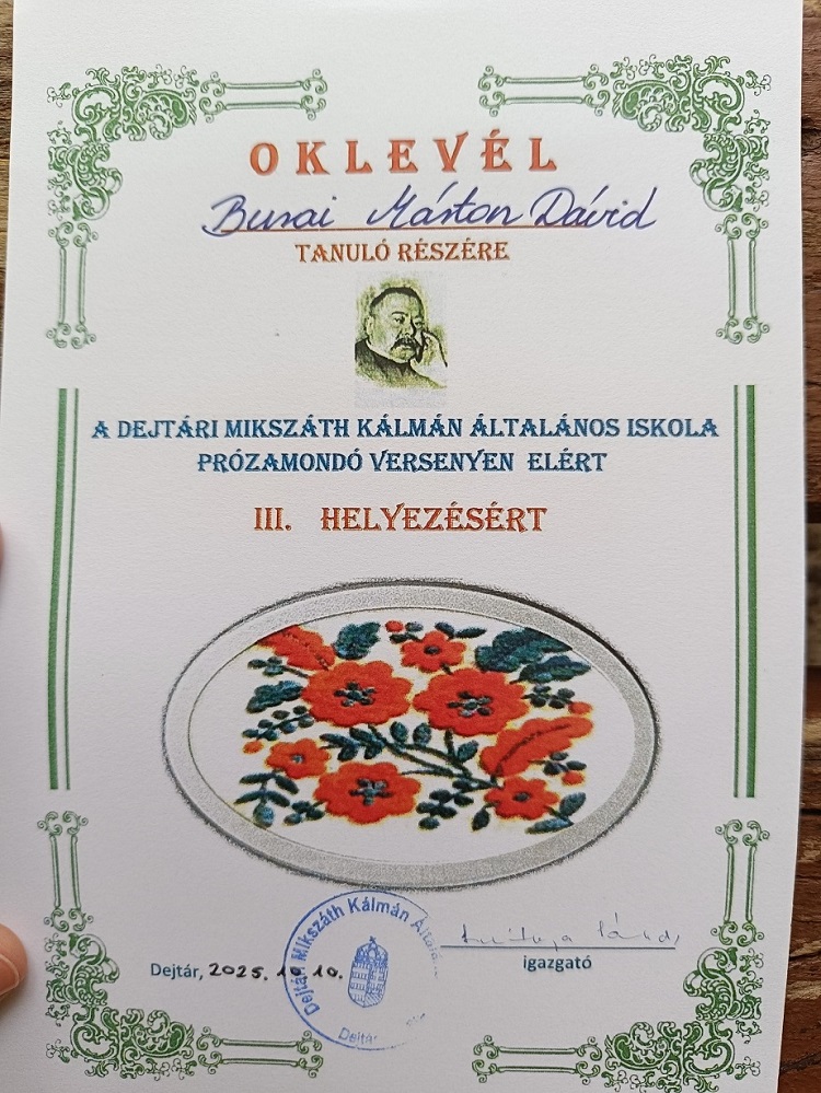 2025.10.10-én Dejtáron jártunk, a Mikszáth Kálmán Általános Iskola által szervezett prózamondó versenyen.