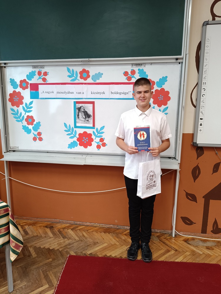 Több kategóriában is versenyeztünk. A 3-4. osztályosok közül Tomek Eleonóra és Körmöczi-Kriván Fülöp; a 7-8. osztályosok közül pedig Cserháti Szonja, Burai Márton és Gergely Botond mutatta be tudását. Burai Márton a 7-8. osztályosok kategóriájában 3. helyezést ért el.