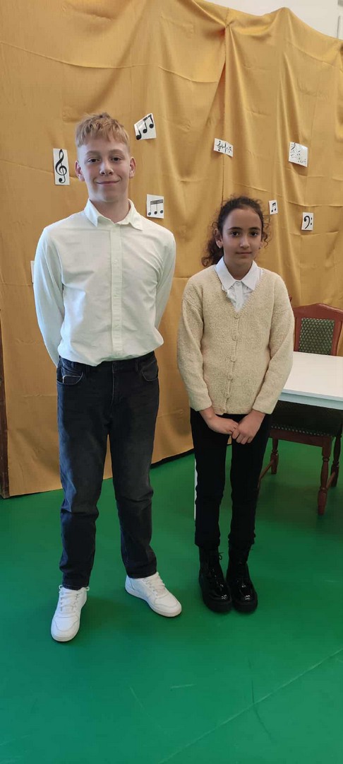 2025. november 7-én iskolánk két tanulója, Virág Szamanta (5.o.) és Gergely Botond (8.o.) vett részt a Szent Imre Katolikus Általános Iskola és Gimnázium énekversenyén. Mindketten egy népdalt és egy egyházi éneket énekeltek.