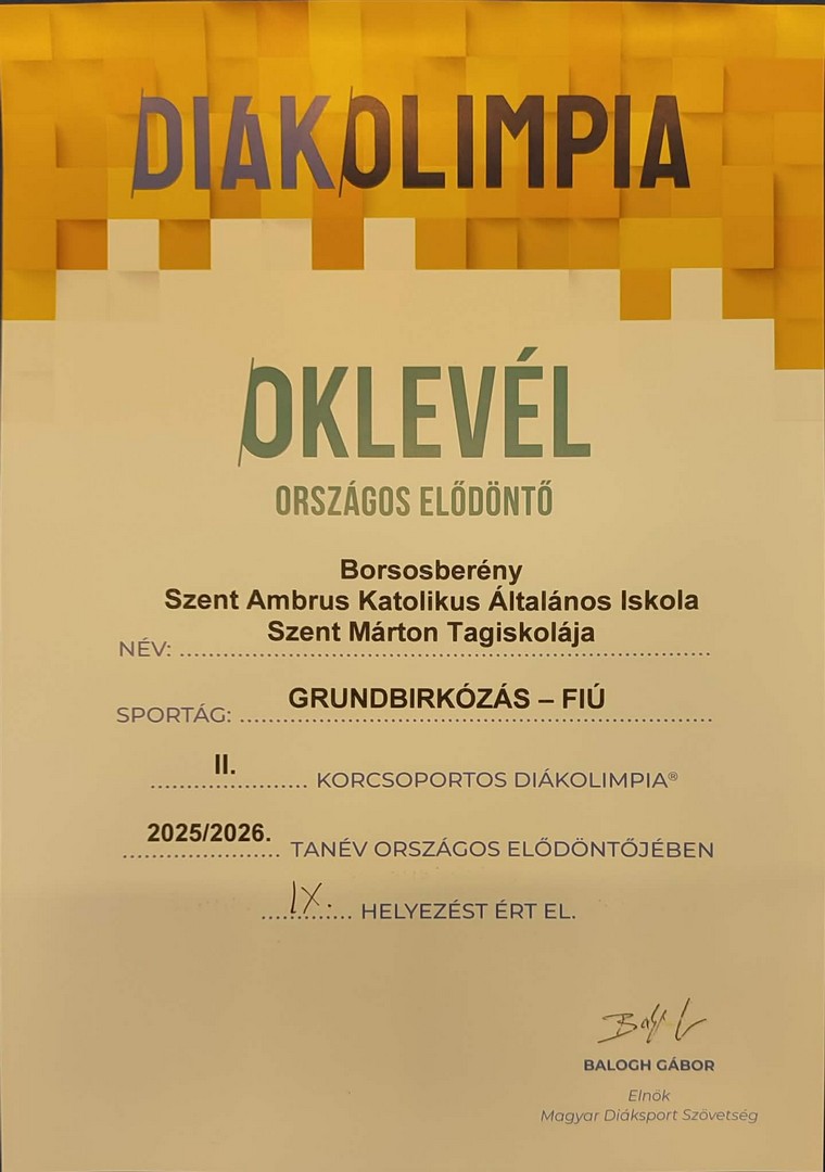 2026 január 14-én Kazincbarcikán rendezte meg a 2025/2026-os tanév Grundbirkózó Diákolimpia elődöntőjét a Magyar Diáksport Szövetség.