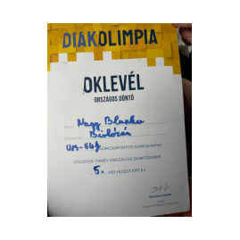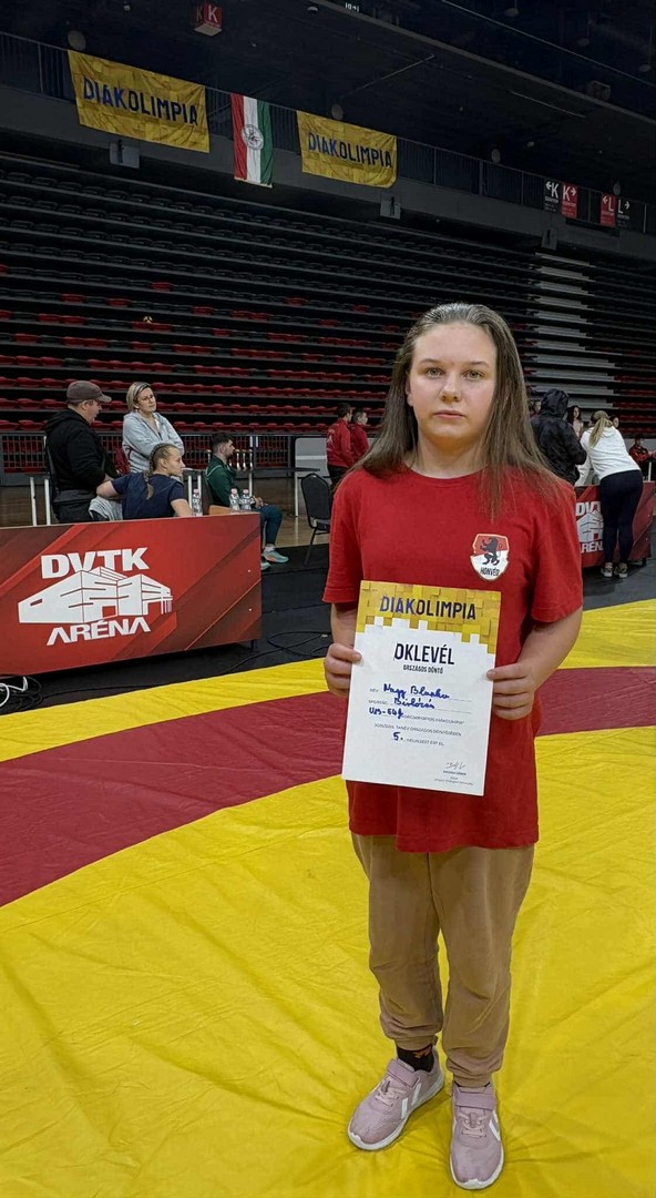 Nagy Blanka, iskolánk 6. osztályos tanulója a Miskolcon szervezett U13 női birkózás Diákolimpia Országos Döntőjén vett részt, ahol 5. helyezést ért el.